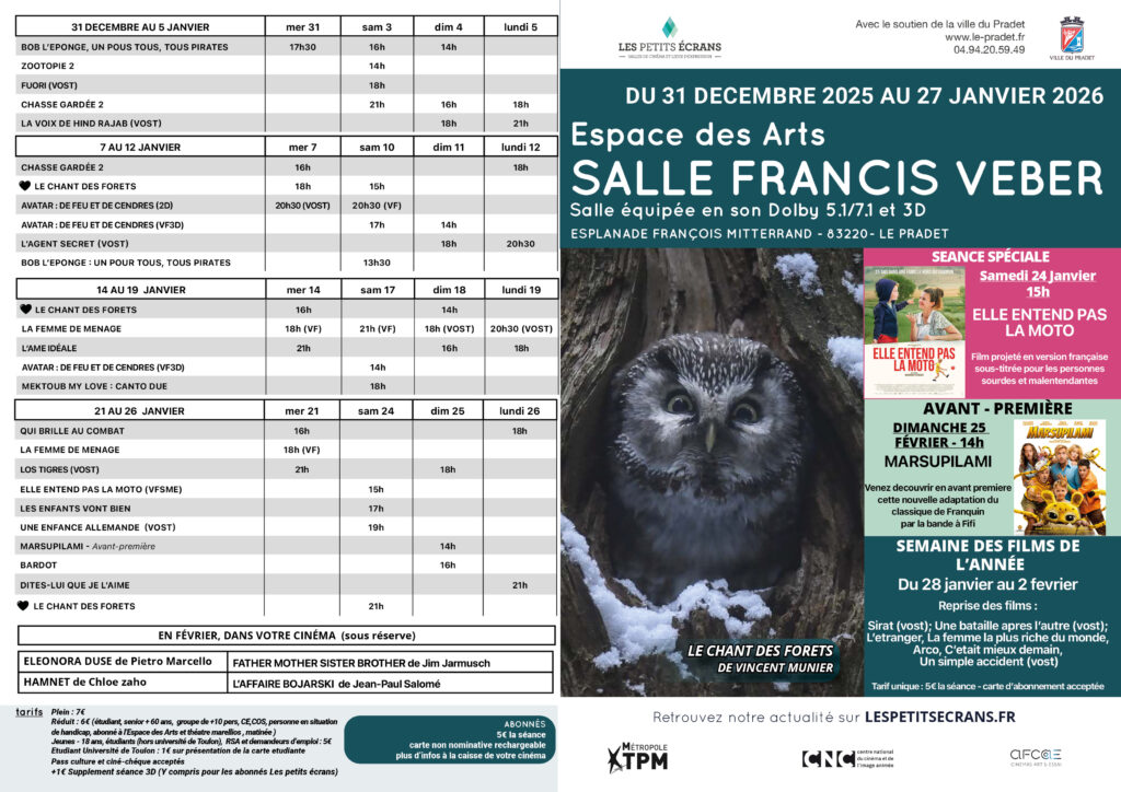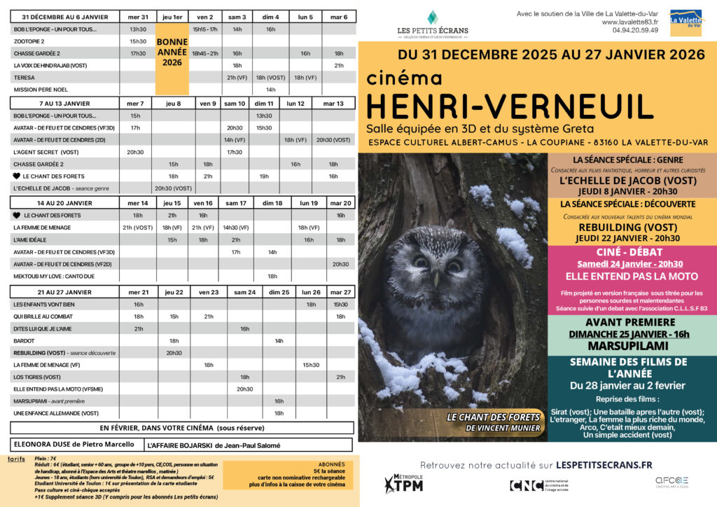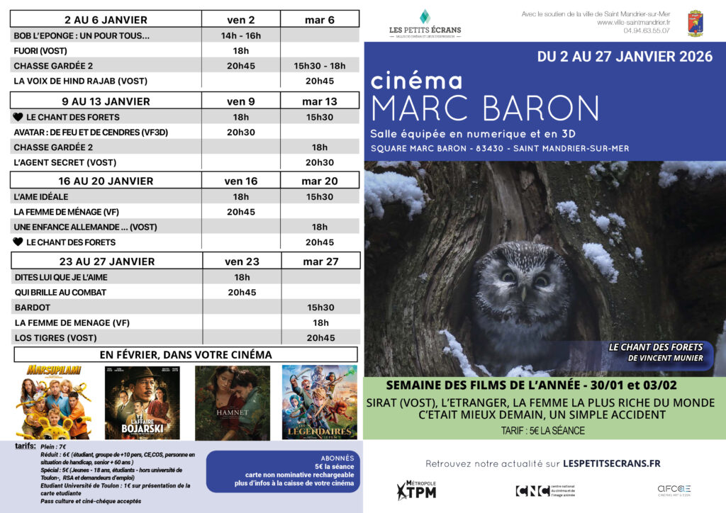 Accueil LES PROGRAMMES MENSUELS PROGRAMME DU 5 AU 30 DECEMBRE 2025 - SAINT MANDRIER SUR MER PROGRAMME DU 3 AU 30 DECEMBRE 2025 - LA VALETTE DU VAR PROGRAMME DU 3 AU 29 DECEMBRE 2025 - LE PRADET PROGRAMME DU 2 AU 27 JANVIER 2026 - SAINT MANDRIER SUR MER PROGRAMME DU 31 DECEMBRE 2025 AU 27 JANVIER 2026 - LA VALETTE DU VAR PROGRAMME DU 31 DECEMBRE 2025 AU 26 JANVIER 2026 - LE PRADET NOS ÉVÉNEMENTS RECEVOIR LE PROGRAMME PAR MAIL Pour recevoir le programme mensuel et la programmation hebdomadaire JE M'INSCRIS !