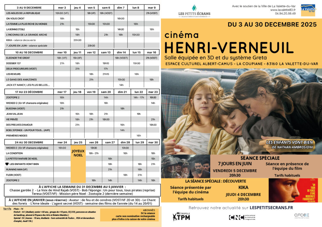Accueil LES PROGRAMMES MENSUELS PROGRAMME DU 5 AU 30 DECEMBRE 2025 - SAINT MANDRIER SUR MER PROGRAMME DU 3 AU 30 DECEMBRE 2025 - LA VALETTE DU VAR PROGRAMME DU 3 AU 29 DECEMBRE 2025 - LE PRADET NOS ÉVÉNEMENTS RECEVOIR LE PROGRAMME PAR MAIL Pour recevoir le programme mensuel et la programmation hebdomadaire JE M'INSCRIS !