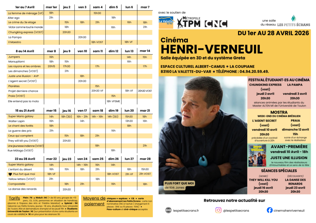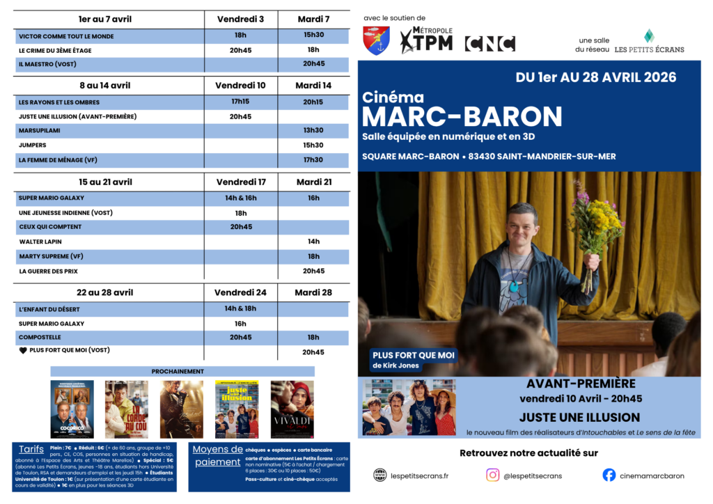 Accueil LES PROGRAMMES MENSUELS PROGRAMME DU 6 AU 31 MARS - SAINT MANDRIER SUR MER PROGRAMME DU 24 AU 31 MARS 2026 - LA VALETTE DU VAR PROGRAMME DU 4 AU 30 MARS 2026 - LE PRADET PROGRAMME DU 3 AU 28 AVRIL - SAINT MANDRIER SUR MER PROGRAMME DU 1er AU 28 AVRIL 2026 - LA VALETTE DU VAR PROGRAMME DU 1ER AU 27 AVRIL 2026 - LE PRADET NOS ÉVÉNEMENTS RECEVOIR LE PROGRAMME PAR MAIL Pour recevoir le programme mensuel et la programmation hebdomadaire JE M'INSCRIS !